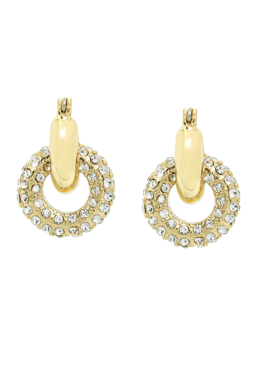 Radiating modern elegance, these crystal hoop earrings redefine classic style. Their sculptural form and lustrous finish offer bold yet sophisticated flair.